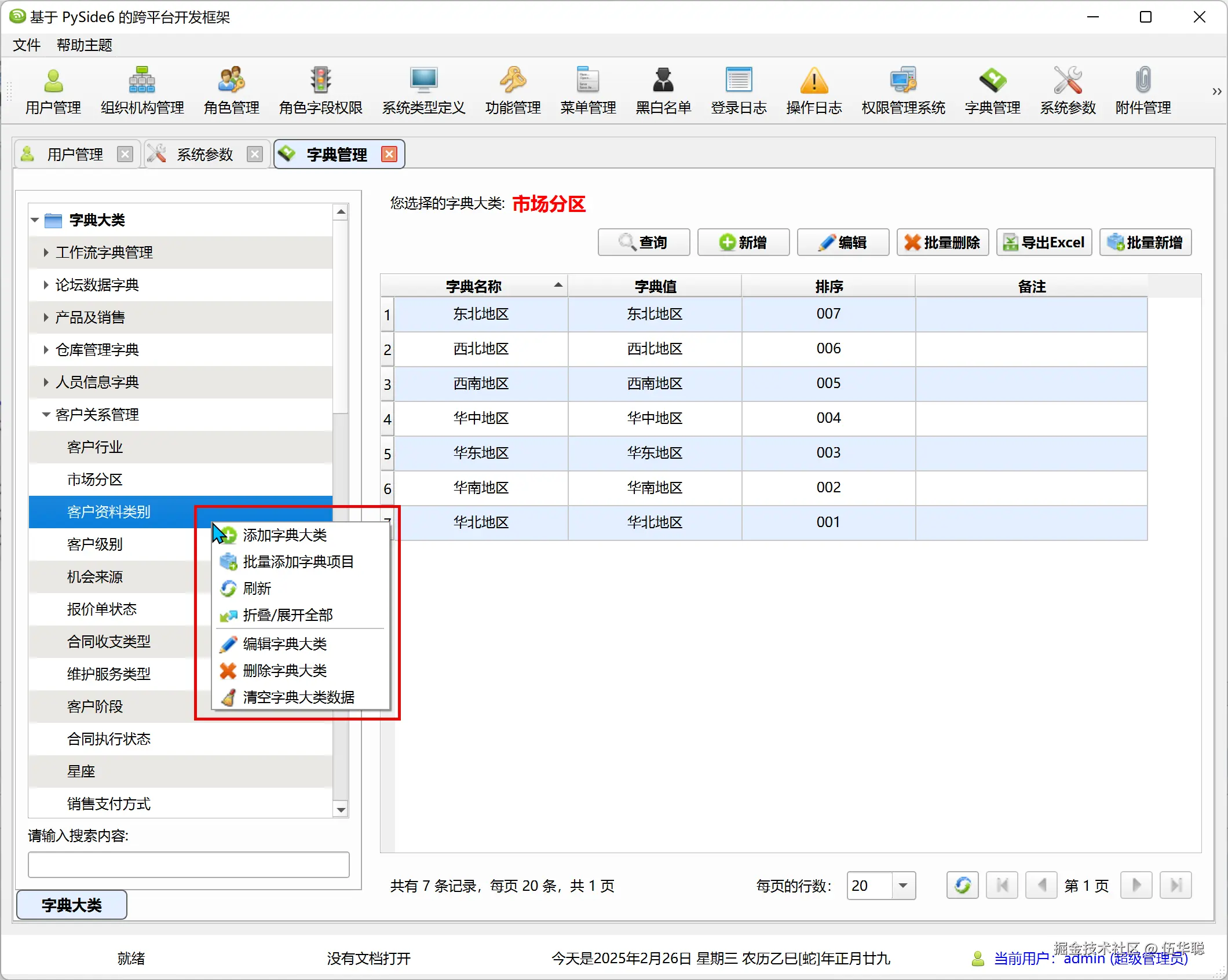 通用字典信息的管理如下所示。