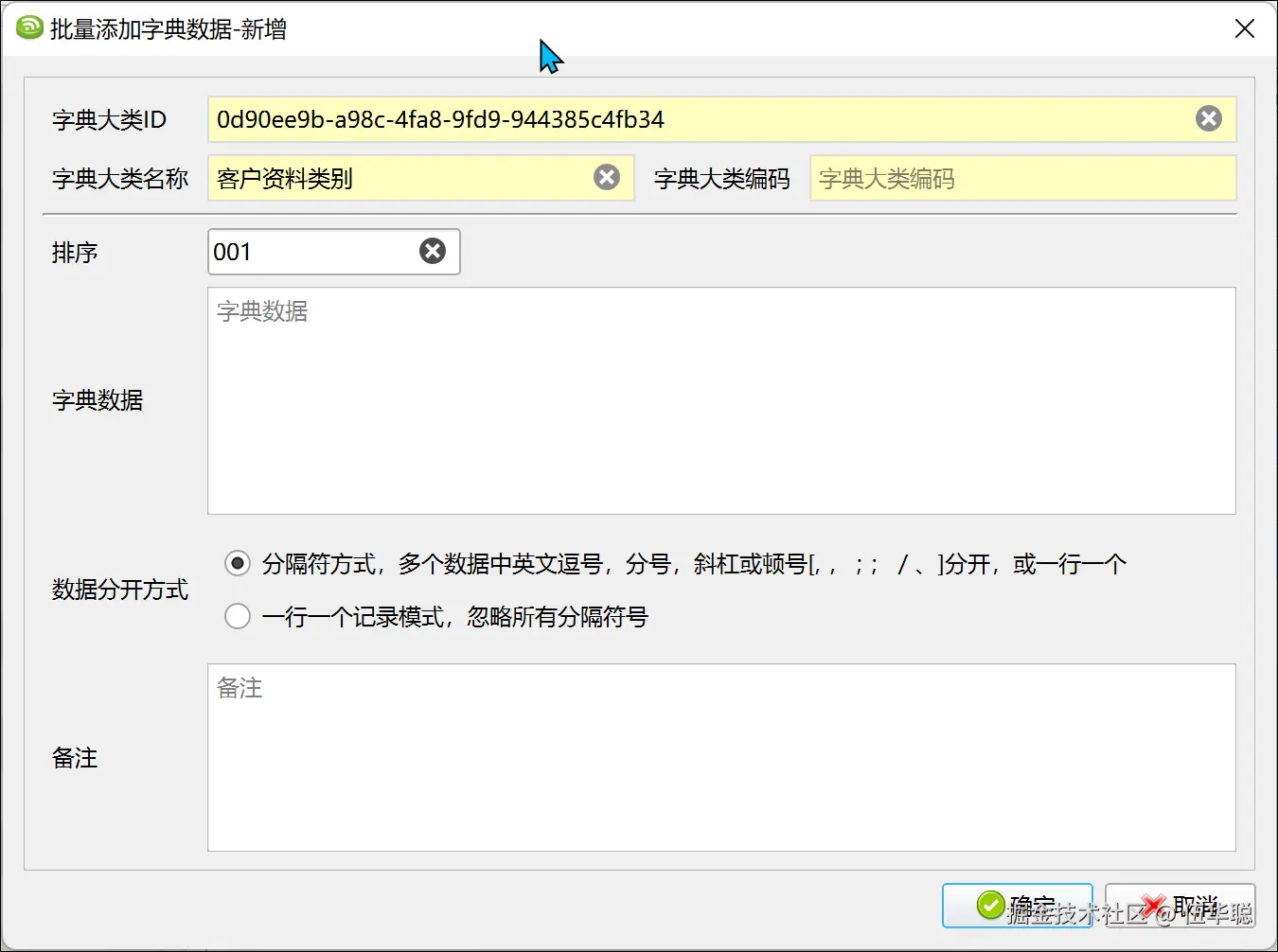 批量新增字典项目界面如下。