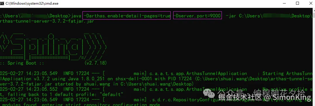 Arthas tunnel server 是一个 spring boot jar 应用,直接通过 java -jar启动,默认端口是8080,也可以通过启动参数修改,arthas agent 连接的端口是7777。管理页面默认是不开启的,因为页面没有做安全拦截的功能。开启的话需要我们通过启动参数打开。