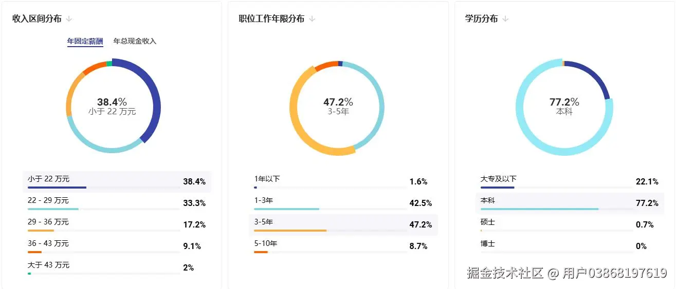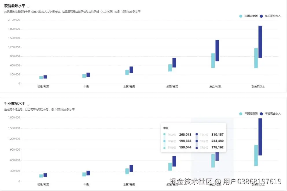 2025年1月游戏行业Java开发工程师薪酬分析 用户03868197619 2025-02-27 292 阅读1分钟 根据薪智薪酬数据平台2025年1月薪酬数据报告来看,北京地区人工智能行业民营企业的Java开发工程师年固定薪酬在16.6-37.2万元,年总现金收入在18.4-42.1万元: 根据薪智薪酬数据平台来看,从学历、职位和年薪来看Java开发工程师的薪酬分布如下: 根据薪智薪酬数据平台来看,从城市维度来看Java开发工程师50分位的薪酬分布如下: 根据薪智薪酬数据平台来看,从职能薪酬水平和行业薪酬水平来看Java开发工程师的薪酬分布如下: