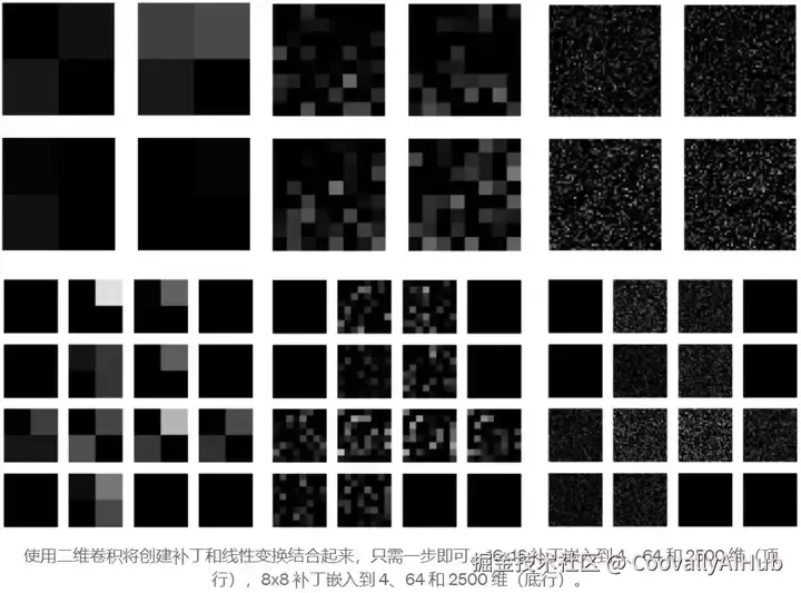 Transformer架构因其强大的通用性而备受瞩目,它能够处理文本、图像或任何类型的数据及其组合。其核心的“Attention”机制通过计算序列中每个token之间的自相似性,从而实现对各种类型数据的总结和生成。在Vision Transformer中,图像首先被分解为正方形图像块,然后将这些图像块展平为单个向量嵌入。这些嵌入可以被视为与文本嵌入(或任何其他嵌入)完全相同,甚至可以与其他数据类型进行连接。通常图像块的创建步骤会与使用2D卷积的第一个可学习的非线性变换相结合,这对于初学者来说可能比较难以理解,所以本文将深入探讨这一过程。