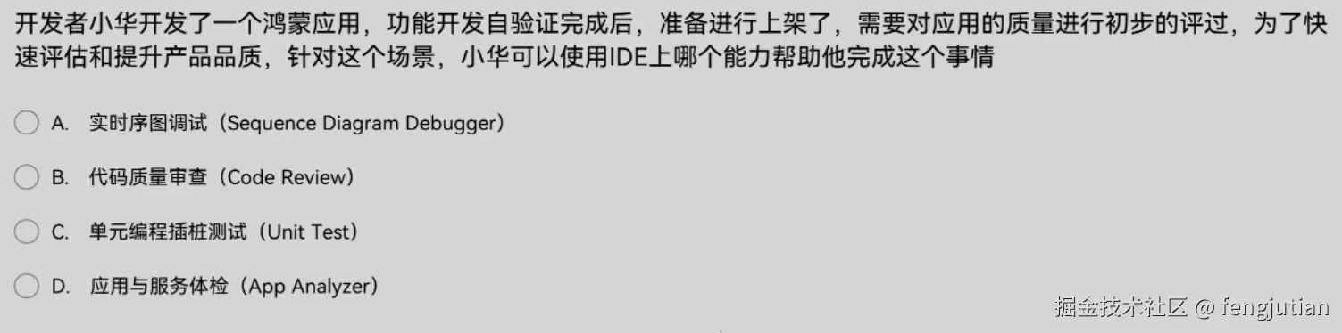 开发者小华开发了一个鸿蒙应用,功能开发自验证完成后,准备进行上架了,需要对应用的质量进行初步的评过,为了快速评估和提升产品品质,针对这个场景,小华可以使用IDE上哪个能力帮助他完成这个事情?