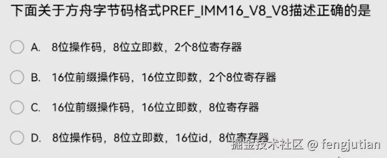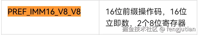 下面关于方舟字节码格式PREF_IMM16_V8_V8描述正确的是?