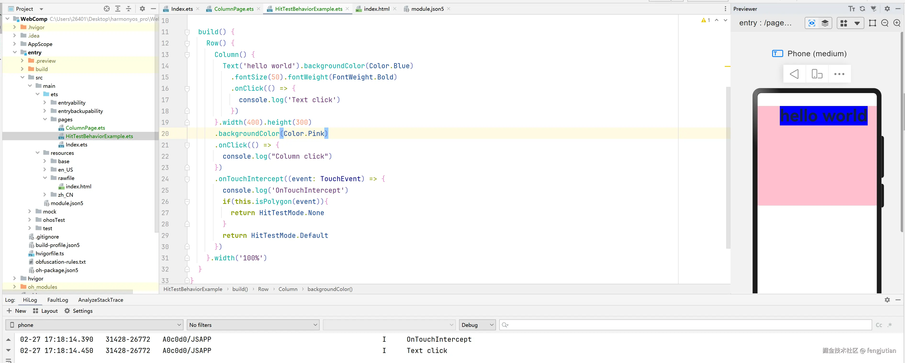 .hitTestBehavior(HitTestMode.Block)