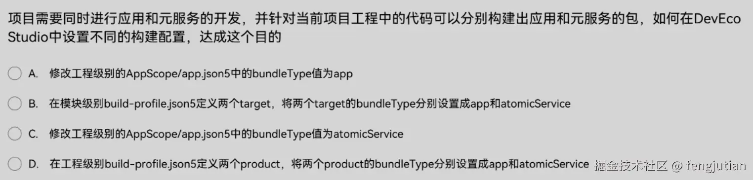项目需要同时进行应用和元服务的开发,并针对当前项目工程中的代码可以分别构建出应用和元服务的包,如何在DevEcoStudio中设置不同的构建配置,达成这个目的?