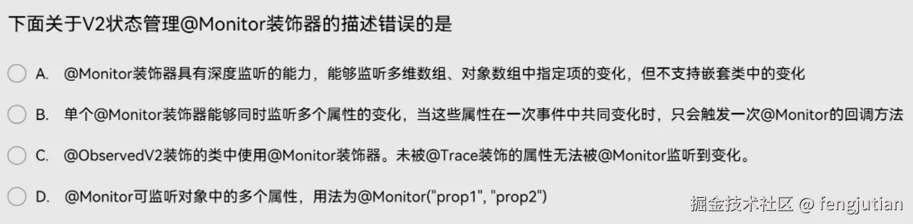 下面关于V2状态管理@Monitor装饰器的描述错误的是