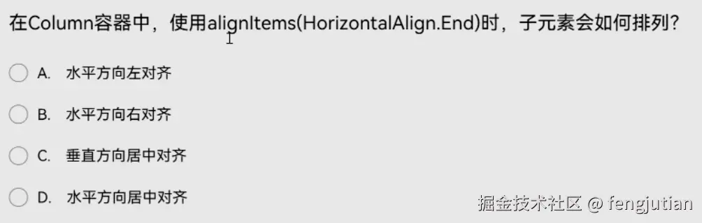 在Column容器中,使用alignItems(HorizontalAlign.End)时,子元素如何排列?