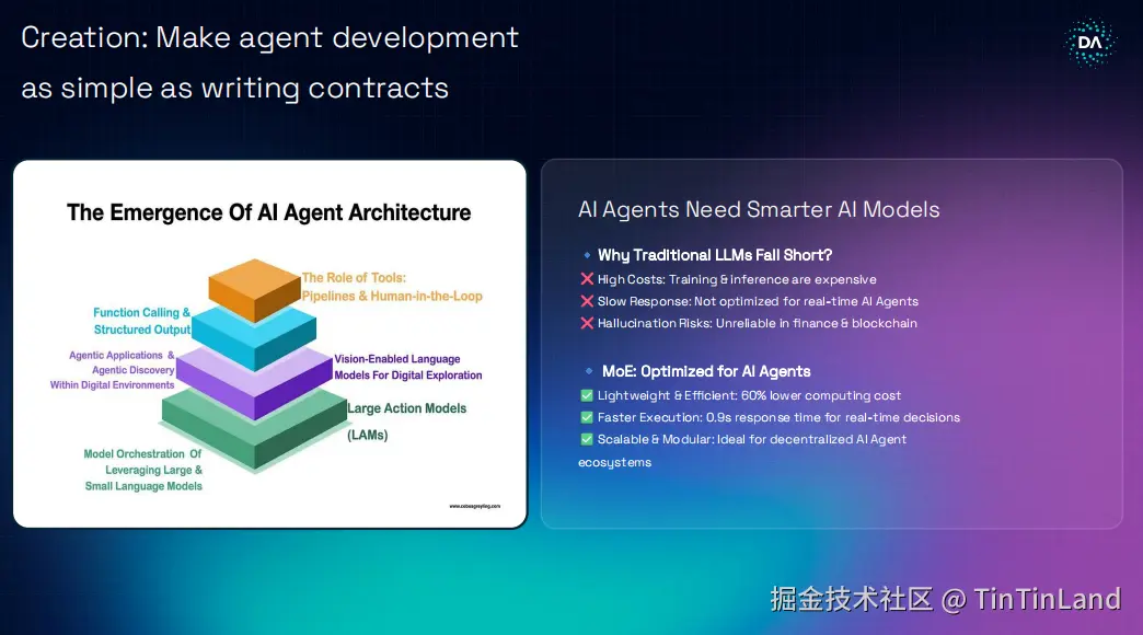 纵览过去一段时间的生态亮点,Movement 创新 AI 代理应用技术框架,从“单点 AI”向“自适应 AI 代理”转变,以去中心化生态和共识算法机制解决 AI 代理决策中出现的共识、一致性和连续性问题,通过采用轻量级、高效的 AI 模型,将响应时间缩短至 1 秒内,计算成本降低 60% 以适应实时决策;通过无缝互动体验将虚拟世界与物理世界紧密相连,AI Agent 降低了技术处理门槛并获得了更多潜在新受众。