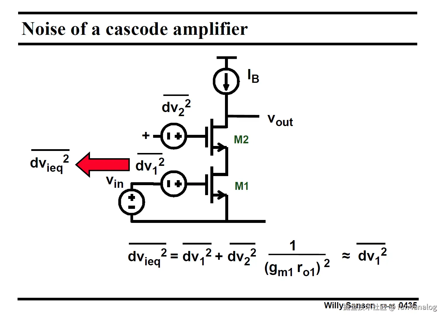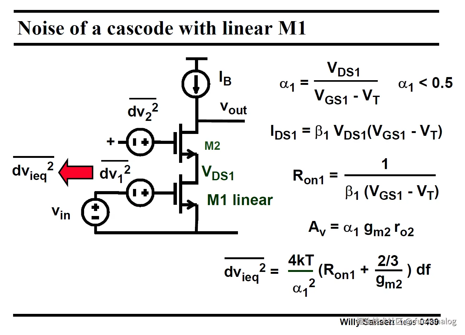 M2不贡献噪声, Cascode噪声和单管噪声一样, 还能提高增益, 因此广泛应用!