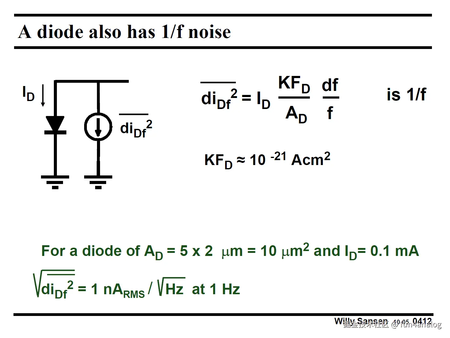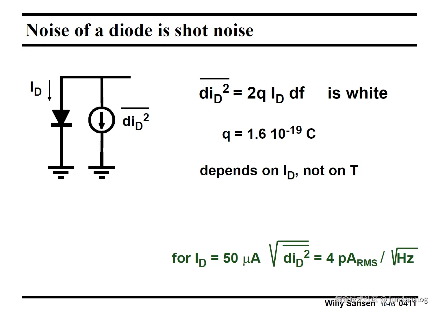 Diode也有白噪声, 注意其值和电流成正比, 和温度无关!