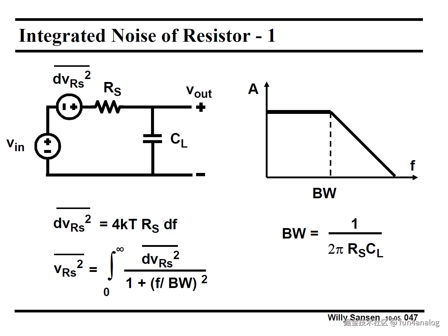 一个重要结论: 噪声密度取决于电阻, 积分噪声取决于电容.