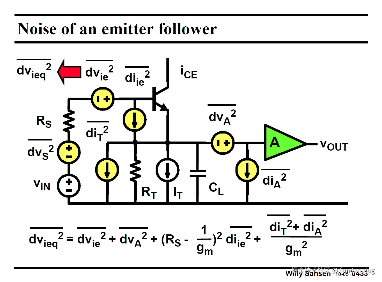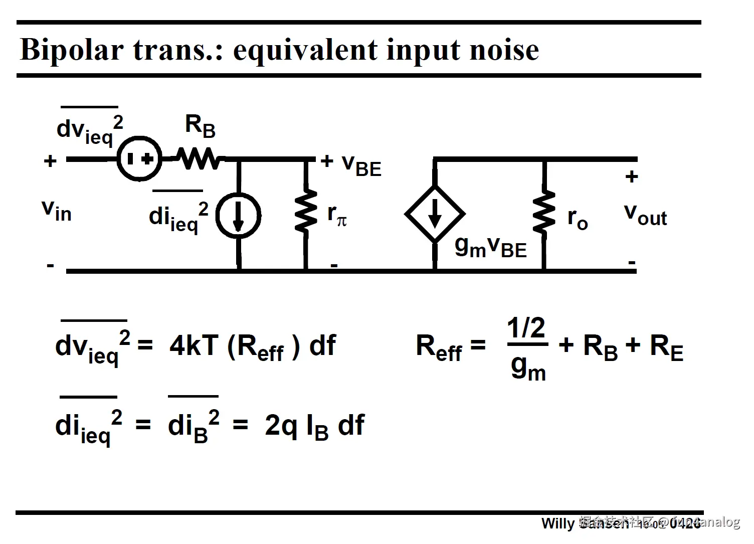 BJT等效输入噪声下图所示, 和gm成反比