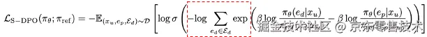 LDPO(πθ,πref)=−E(x,yw,yl)~D[logσ(βlogπθ(yw∣x)πref(yw∣x)−βlogπθ(yl∣x)πref(yl∣x))]LDPO(πθ,πref)=−E(x,yw,yl)~D[logσ(βlogπref(yw∣x)πθ(yw∣x)−βlogπref(yl∣x)πθ(yl∣x))]