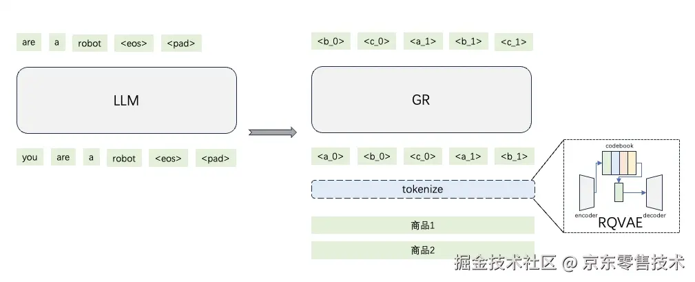 为了简化流程,依靠大模型在自身内部进行商品查询与推荐,我们需要预先构建一个离散化的索引体系来表示商品,然后通过离散化后的索引(语义ID)作为用户历史行为中的商品,输入大模型中,让模型学习和理解用户的行为,最后可以去预测用户的下一个行为。