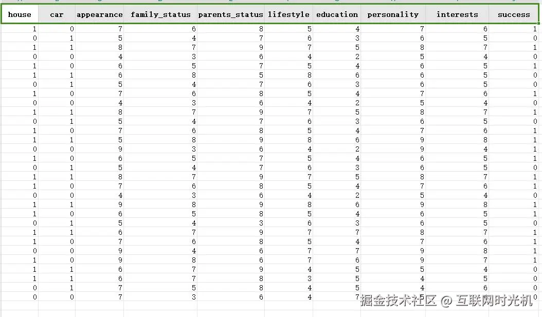 首先,我们需要准备一份相亲成功率的数据,类似deepseek这样的大模型也是根据网上的数据进行总结之后,才能得出预测结果。