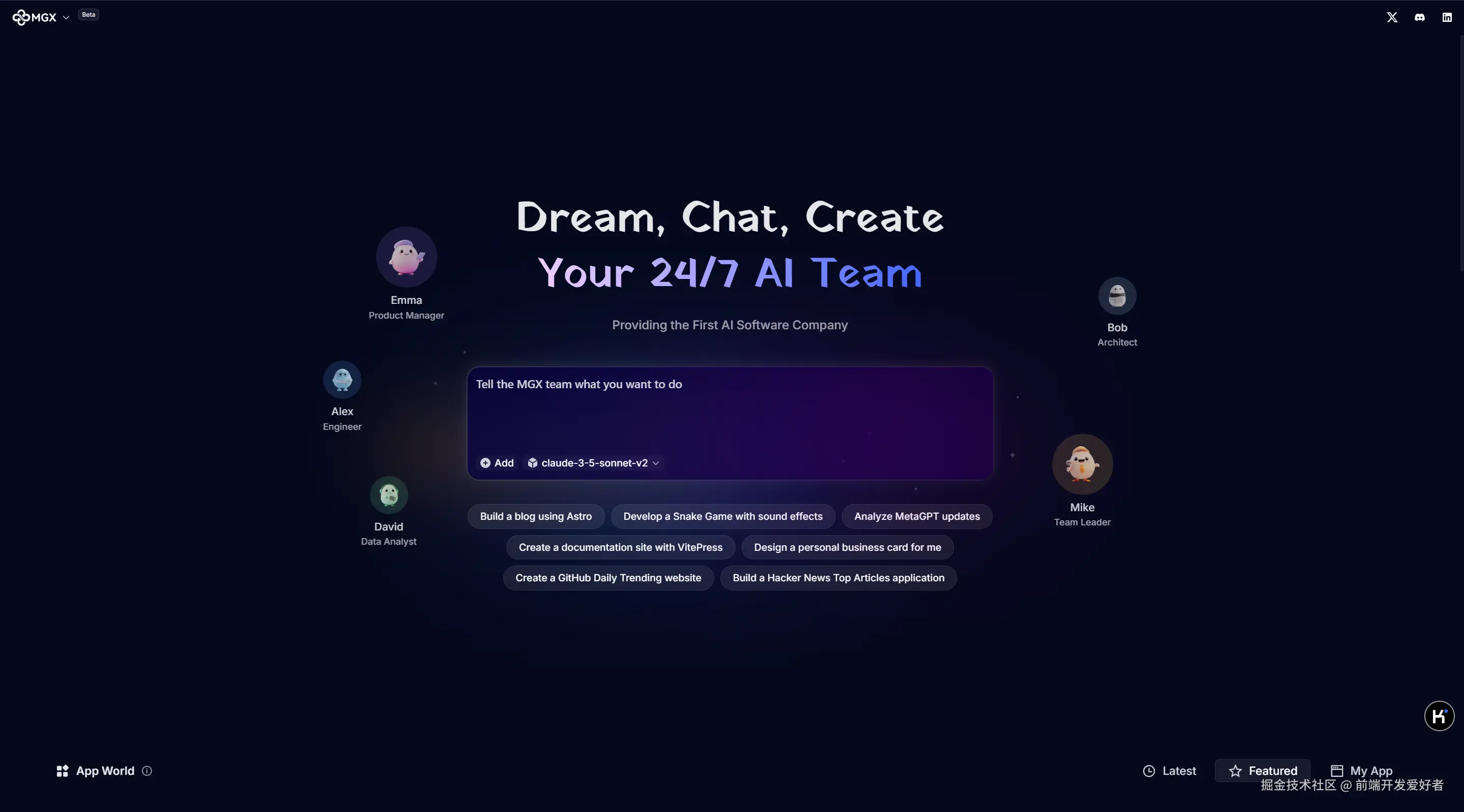 MetaGPT X 官网:https://mgx.dev
