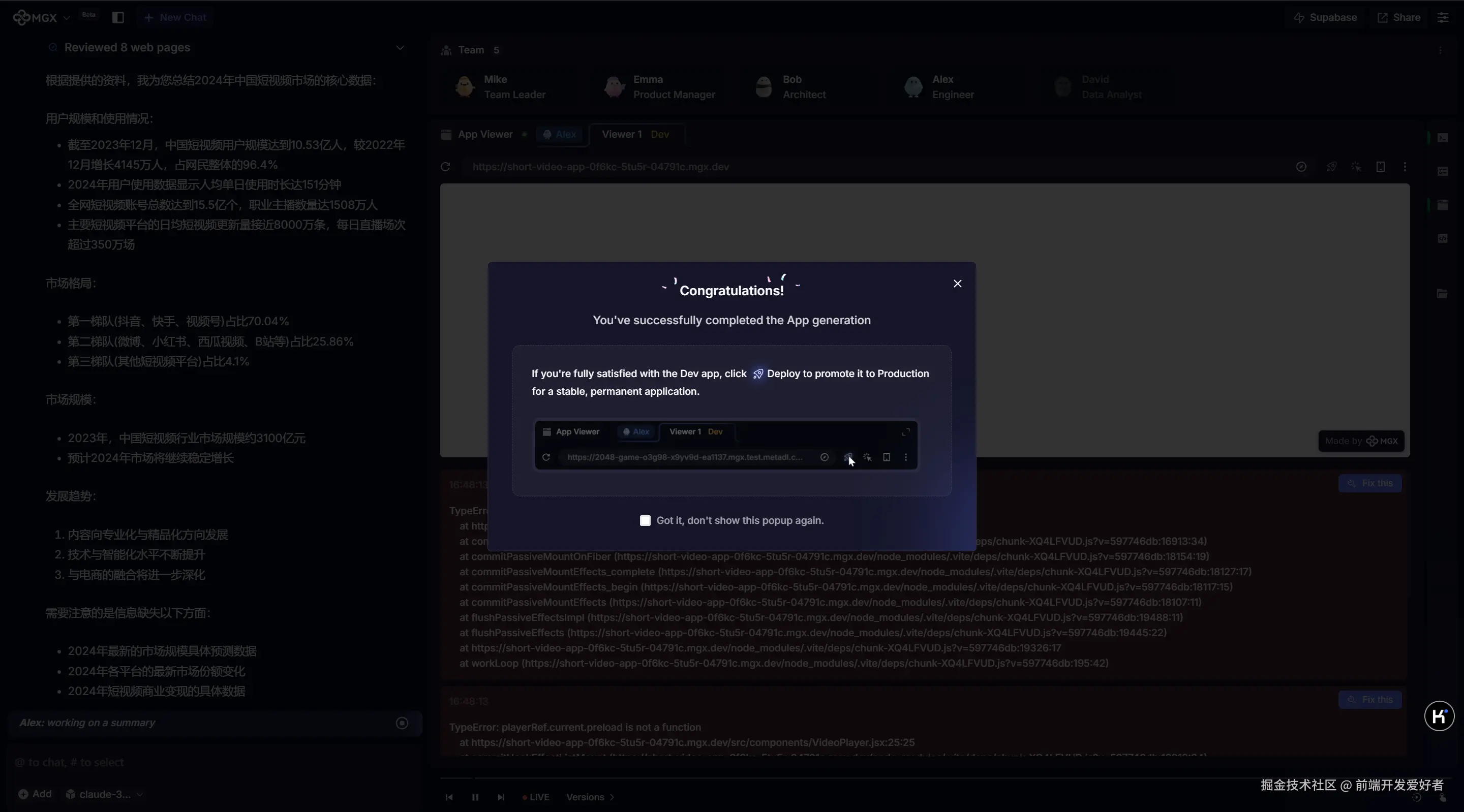 好, 废话不多说, 直接开干, 让 MetaGPT X 帮我开发一个 App (以短视频为主(类似抖音))