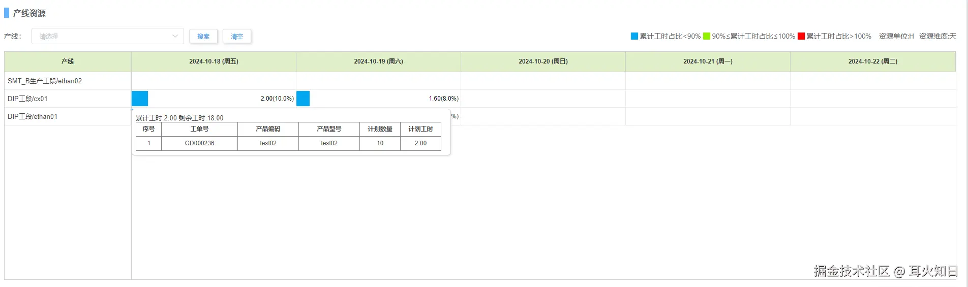 tasks.data = [ { id: '1', type: 'project', text: '工段A/产线1', openLineDuration: 2, clearLineDuration: 1, uph: 60, start_date: '2024-10-20', duration: 24, progress: 0.5, remainingWorkHour: 16 }, { id: '1-1', parent: '1', date: '2024-10-20', isNoWorkday: false, text: '8 小时已排工时', workHourAccumulate: 8, remainingWorkHour: 8, workHourAccumulatePercent: 50, start_date: '2024-10-20', progress: 0.5, duration: 24, detailData: [] }];