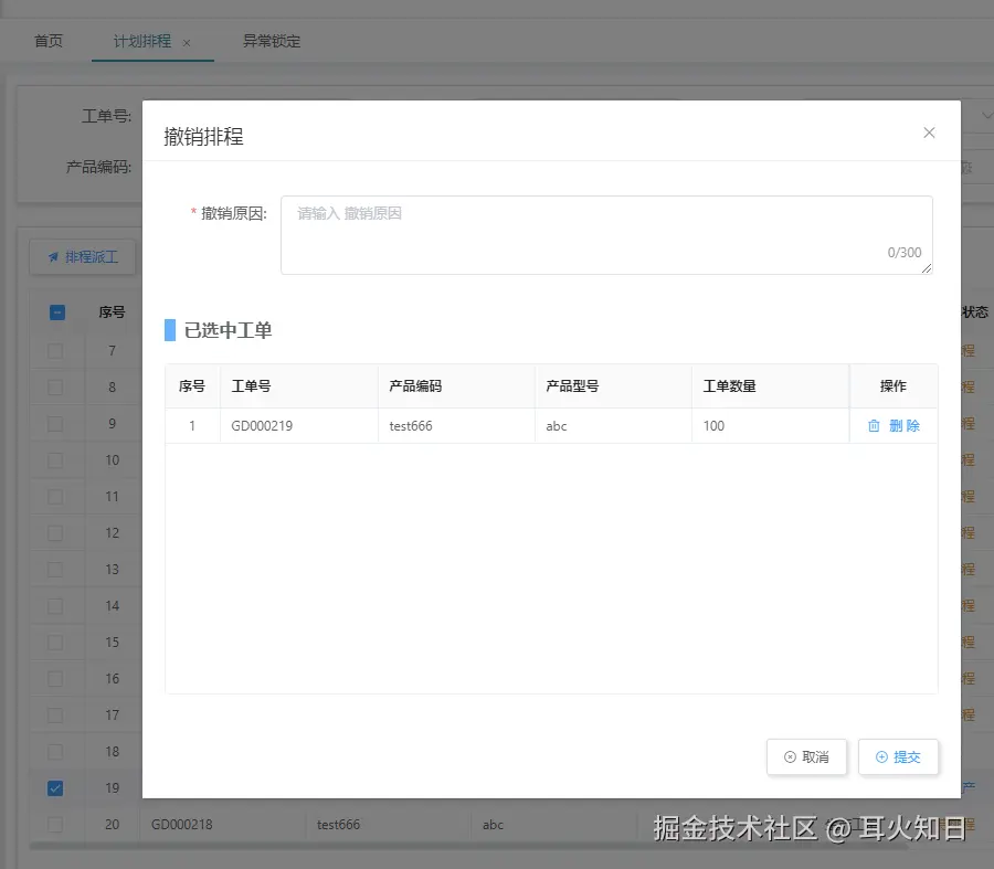 - 撤销排程入口:在已选工单上操作撤销排程。