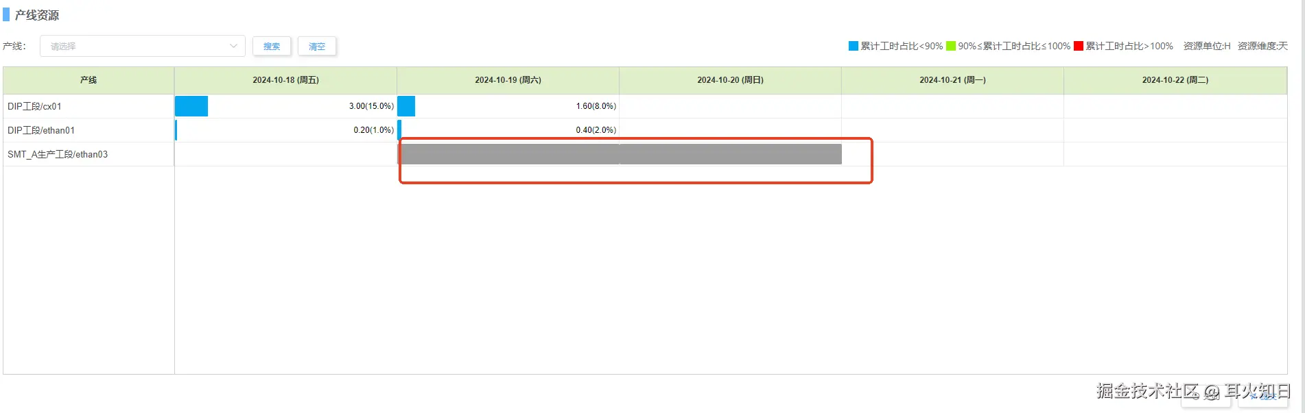 <GanttComponent>显示当前工单的产线资源占用情况。