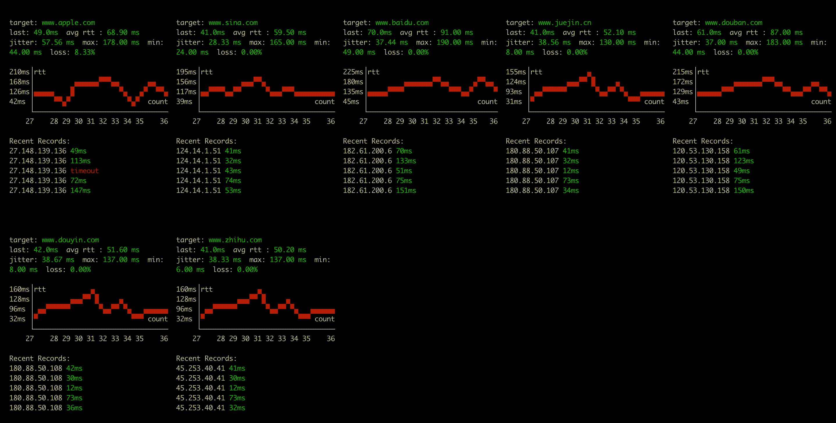 28、Nping:Rust 的多地址并发 Ping 工具。这是一个用 Rust 开发的可视化 Ping 工具,支持同时对多个目标地址并发 Ping 操作。它提供了分区折线图和表格视图等可视化展示,支持实时动态展示延迟、丢包率等性能指标,同时兼容 IPv4 和 IPv6 网络环境。来自 @韩数 的分享