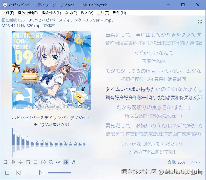8、MusicPlayer2:多功能的 Windows 音乐播放器。该项目是一款由 C++ 编写的简约、小巧、多功能的 Windows 本地音乐播放器,支持常见音频格式,并提供歌词显示、卡拉 OK 模式、歌词编辑、专辑封面展示、频谱分析和音效调节等功能。来自 @wyf9 的分享