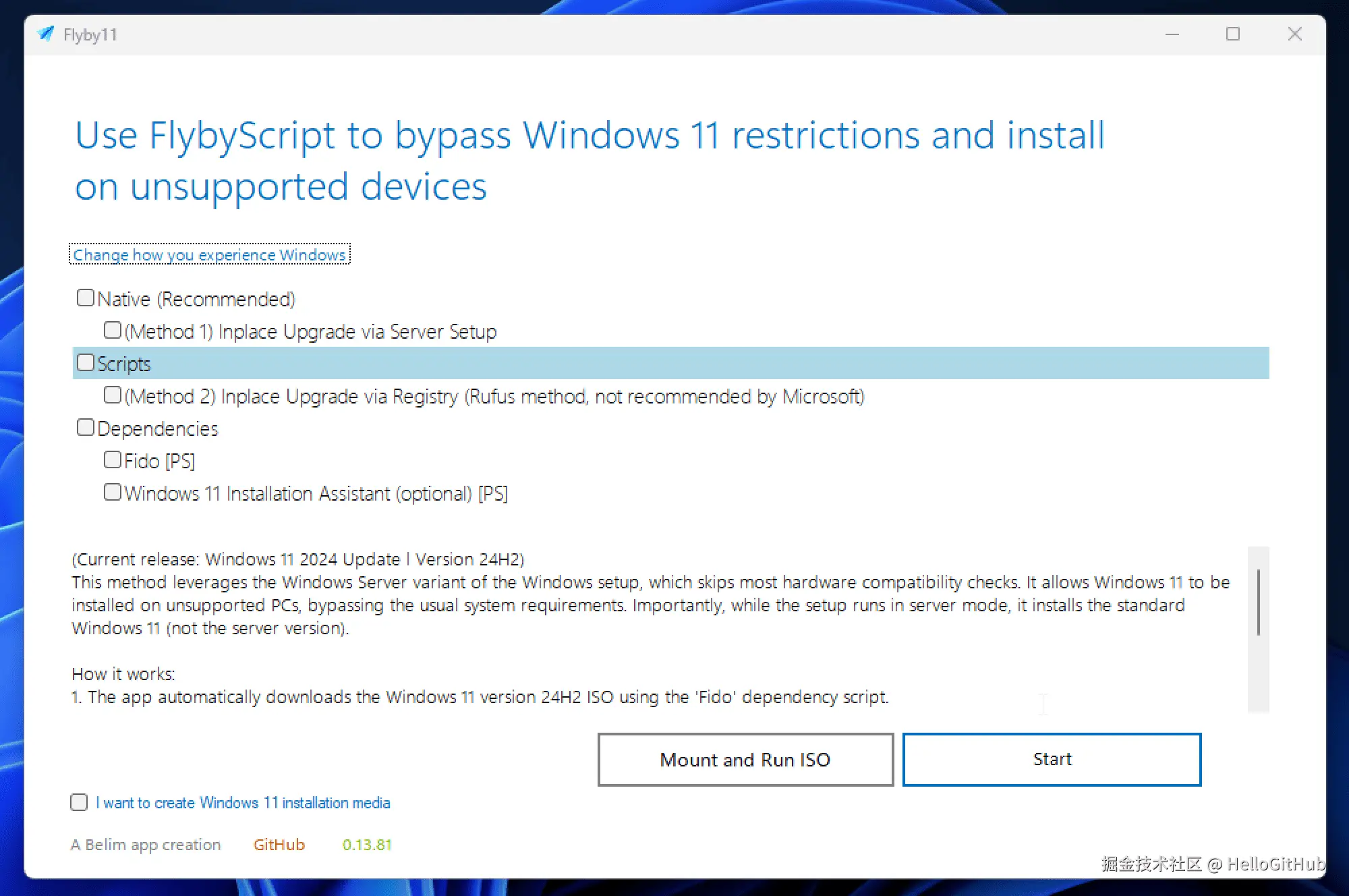3、Flyby11:Windows 11 升级助手。这是一款开源的 Windows 11 升级辅助工具。它能够帮助用户绕过硬件限制,将 Windows 11 最新版本,安装到官方不支持的旧设备上。