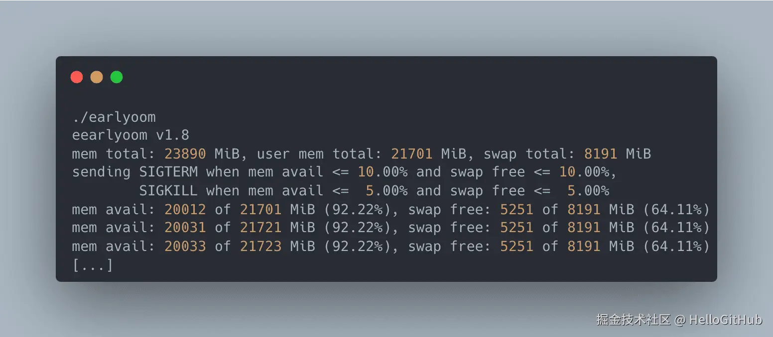 1、earlyoom:防止 OOM 的 Linux 守护进程。这是一款专为 Linux 设计的 OOM 守护进程,旨在弥补内核自带的 OOM Killer 仅在内存耗尽时才触发的不足。它能够提早干预(默认 10%),自动终止占用内存最多的进程,从而防止系统因内存耗尽而陷入卡死的状态。