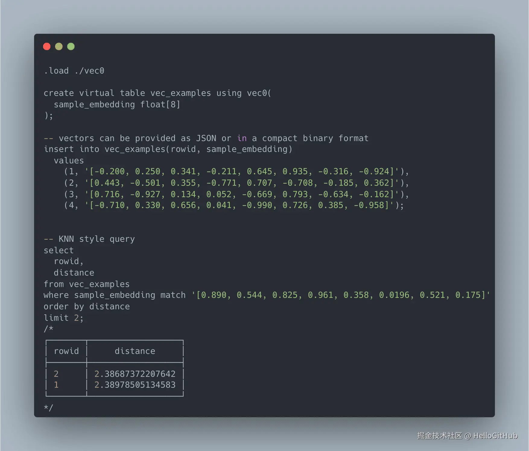 2、sqlite-vec:SQLite 的向量搜索扩展。这是一个体积小、零依赖的向量搜索 SQLite 扩展,为 SQLite 数据库添加了插入和查询浮点、整数和二进制向量的能力。它可以运行在任何支持 SQLite 的平台上,包括 Linux、macOS、Windows、浏览器(WASM)、树莓派等。