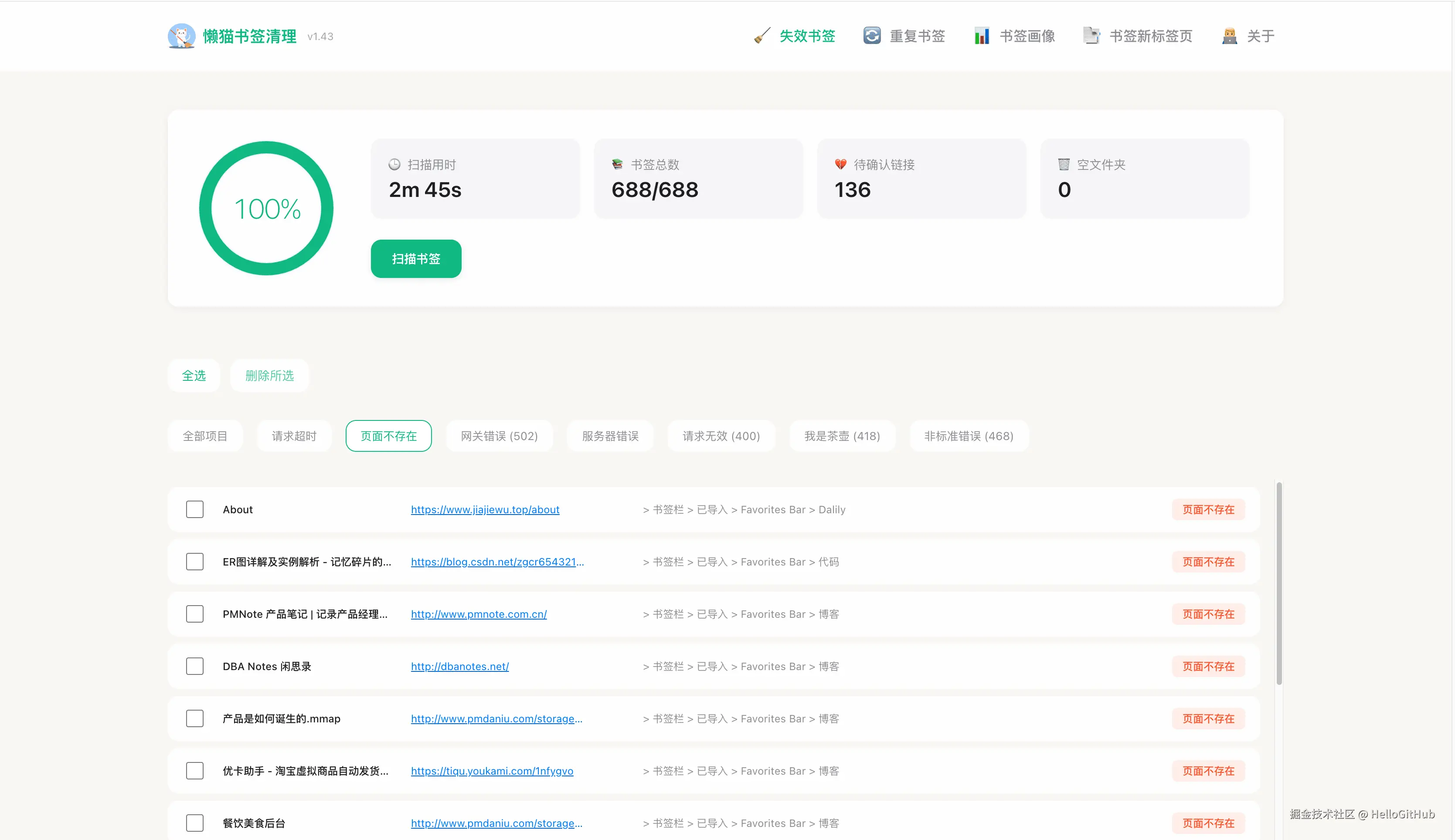 39、LazyCat-Bookmark-Cleaner:一键整理浏览器书签的工具。这是一款开源的浏览器书签管理插件,帮你轻松整理浏览器书签。它无需联网、保护隐私,支持中英双语、自动检测无效书签、重复书签和空文件夹,还可以生成书签使用报告。