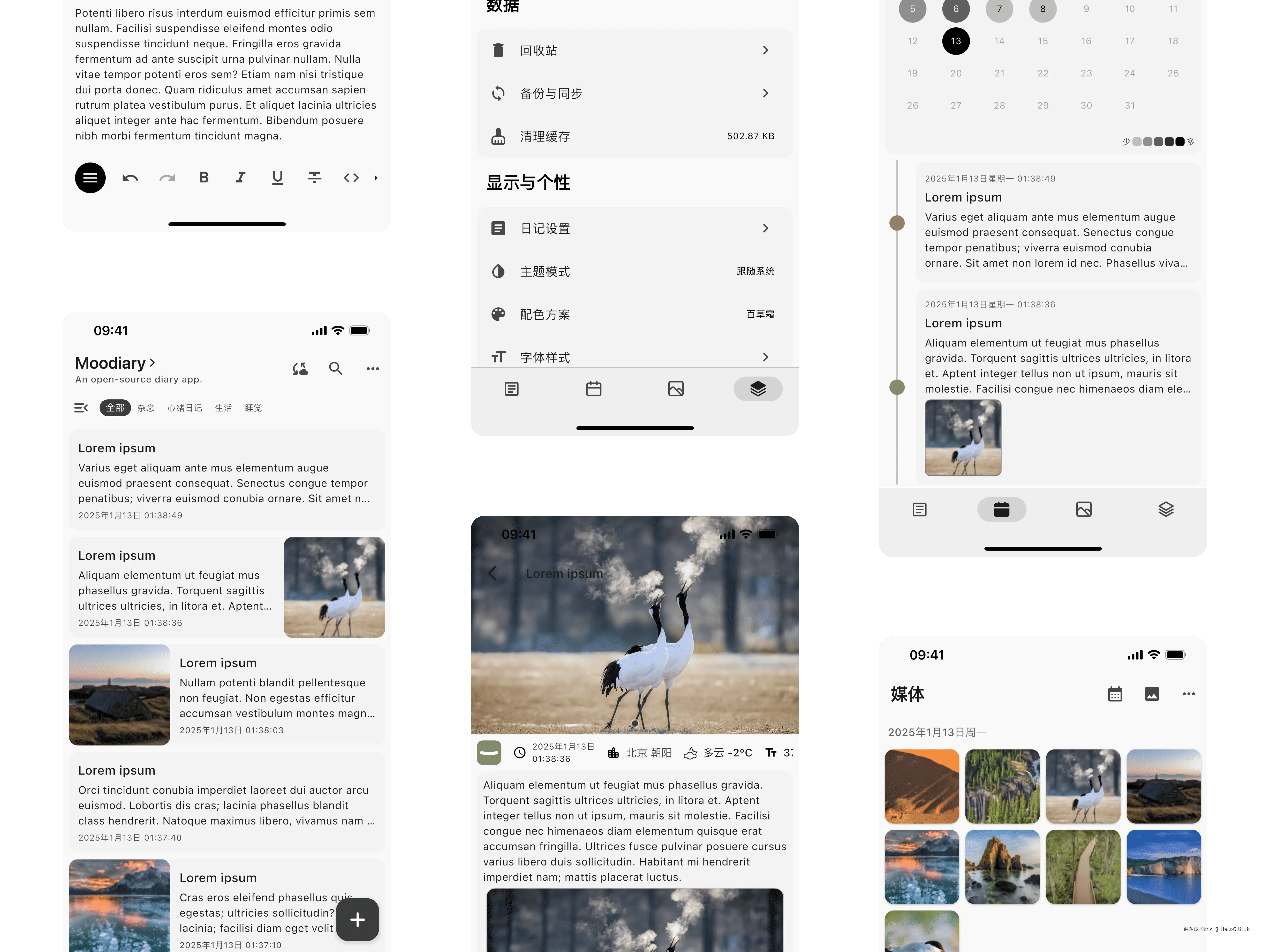 41、moodiary:一款 Flutter 构建的开源跨平台日记应用。这是一款完全开源、颜值在线的日记软件。它支持多种形式的文本编辑和多媒体附件,同时提供密码保护、生物识别解锁、足迹地图、智能助手、同步与备份等功能,兼容 Android、iOS、Windows、macOS 和 Linux 系统。来自 @云烨 的分享