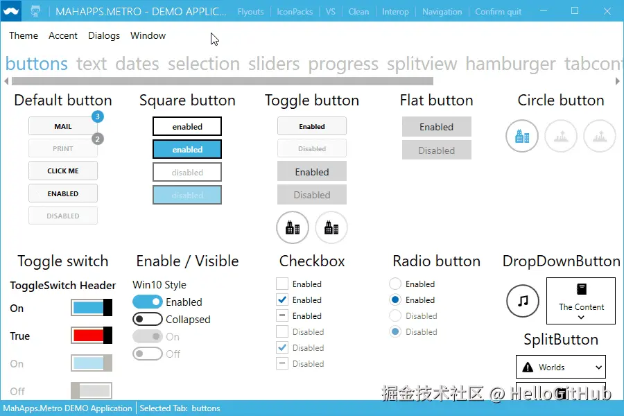 5、MahApps.Metro:优雅的 WPF UI 框架。该项目是专为 WPF 应用程序设计的 UI 框架,旨在帮助开发者快速构建具有现代感、优雅的桌面用户界面。它内置丰富的控件、图标、主题,以及便捷的 Visual Studio 模版。