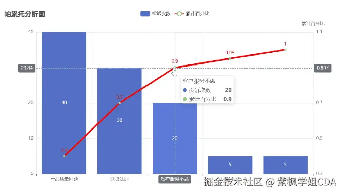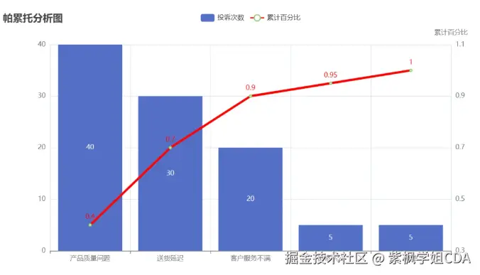 本实现方案通过Pyecharts高效构建了交互式帕累托分析图表,将技术实现与业务分析有机结合,为决策者提供直观的数据支持。开发者可根据具体业务需求扩展功能模块,构建完整的决策分析系统。绘制帕累托的流程相对固定,因此这些代码也可以封装为函数方便后续的复用。