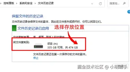 步骤1:在电脑【设置】中打开【文件历史记录】功能(可以通过设置里面的搜索框找到);