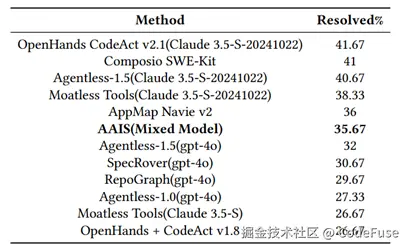 表格 4 AAIS 在 SWE-Bench Leaderboard 上的表现