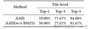 实验还探究了文件粒度上的 BM25 检索对定位成功率的影响,如表 2 所示,结果表明检索提高了 23% 的函数级 Top1 定位成功率。实验仅在文件粒度和函数粒度上进行了评估,而不包括行粒度,这是因为对于一个特定的问题而已,可能存在多种解决方案均通过所有的测试用例。