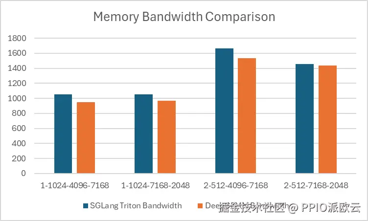在MoE模型的推理场景中,PPIO对DeepGEMM在H100和H200两款GPU上的性能表现进行了详细测试,并与官方的H800评测数据进行了对比。