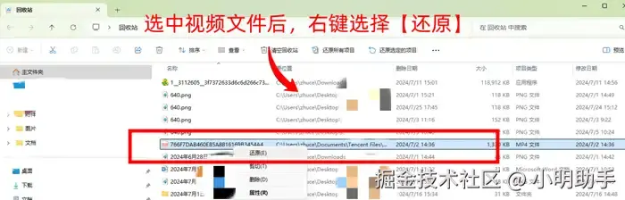 在电脑误删大多数类型的文件我们都可以先试着在回收站里找回。视频误删怎么恢复?已被清理的视频如何恢复?回收站是电脑默认的删除文件路径,在误删视频后可以通过打开【回收站】,在里面寻找目标视频文件后点中,按下【鼠标右键】后选择【还原】。