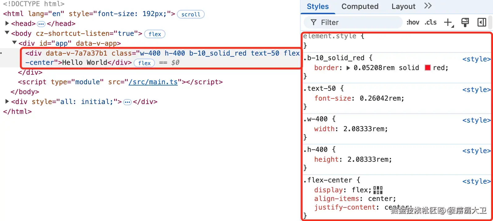 看看下面这两张图,感受一下使用 Unocss 编写 CSS 的魔法。