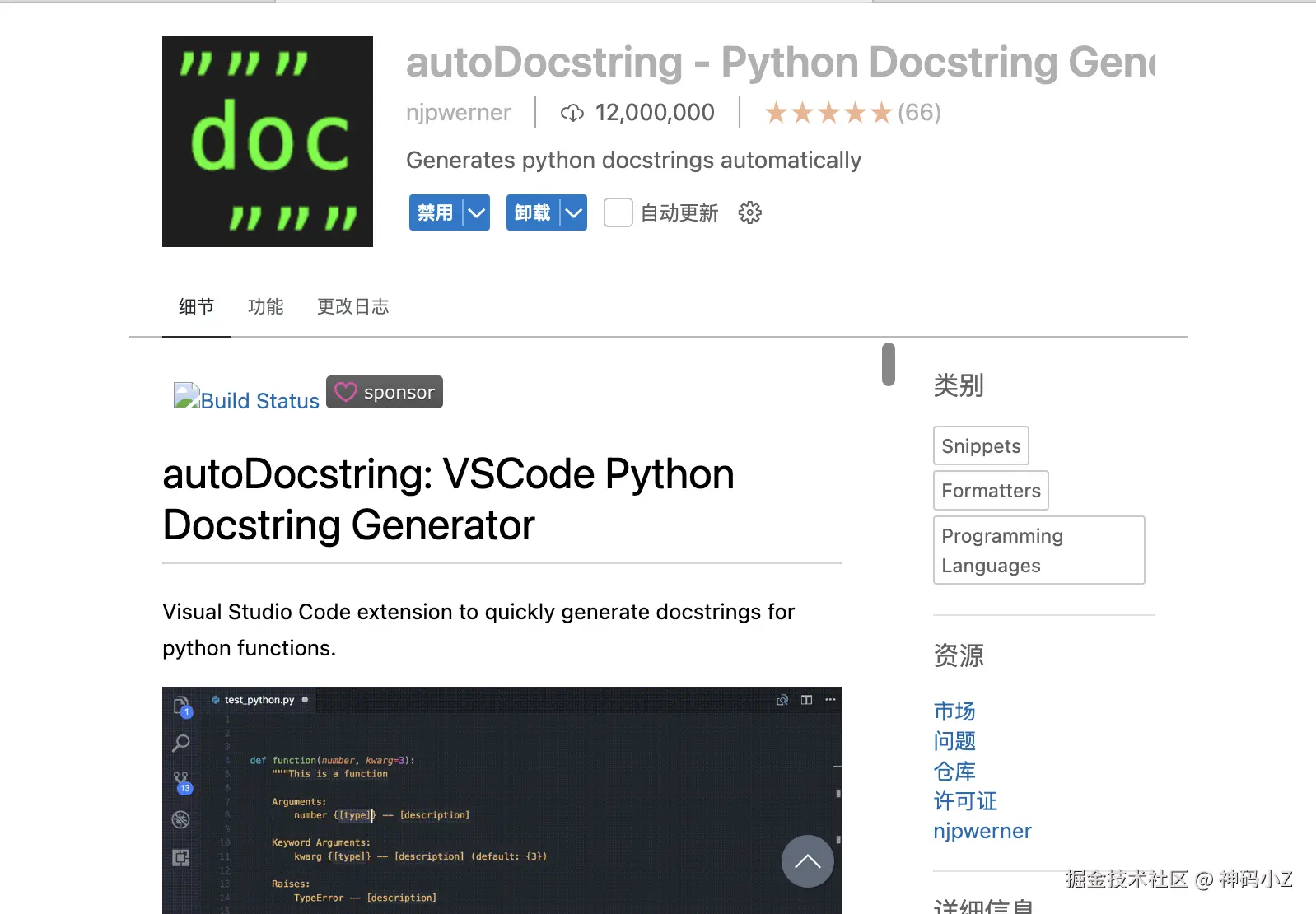 Python Docstring Generator可以自动创建docstring,这真的为开发人员减少了的很大工作量。并且,生成的文档字符串遵循所有标准格式,包括Google、docBlockr、Numpy、Sphinx和PEP0257。它的主要功能包括: