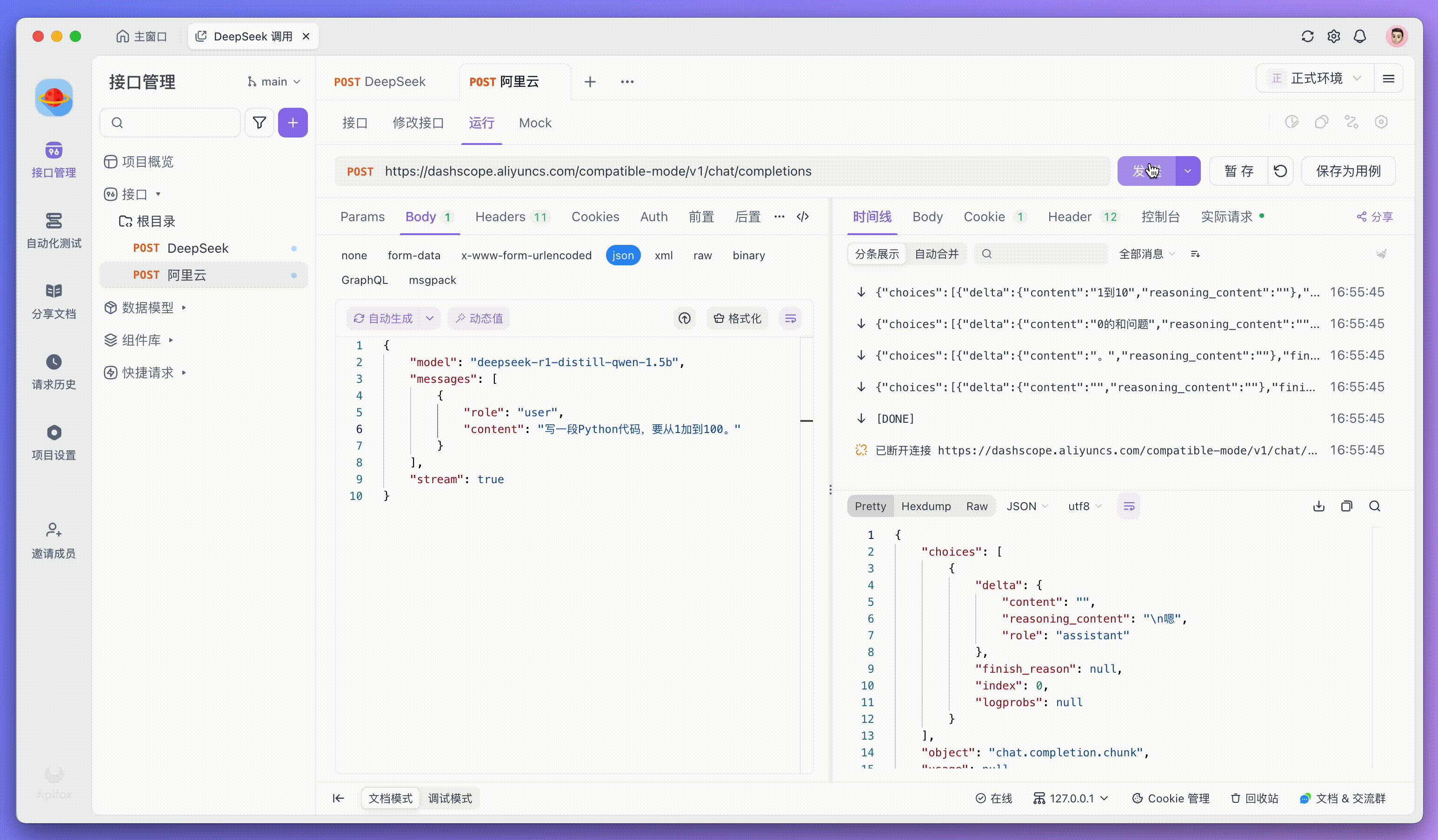 更多相关内容可以查看上期推文:《Apifox 增强 AI 接口调试功能:展示 DeepSeek 思考过程、自动合并 SSE 响应》