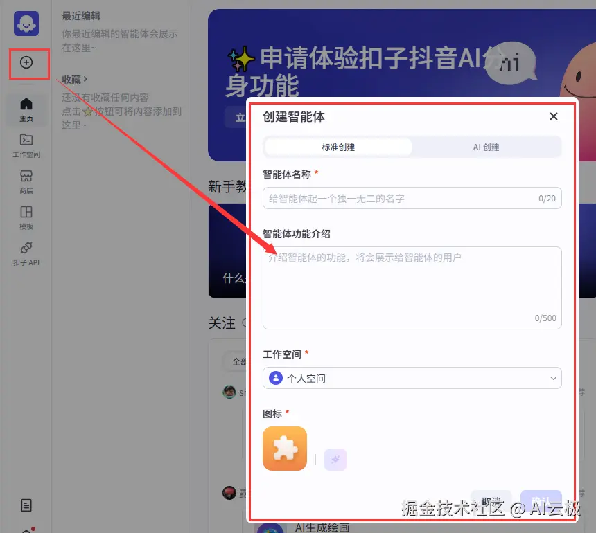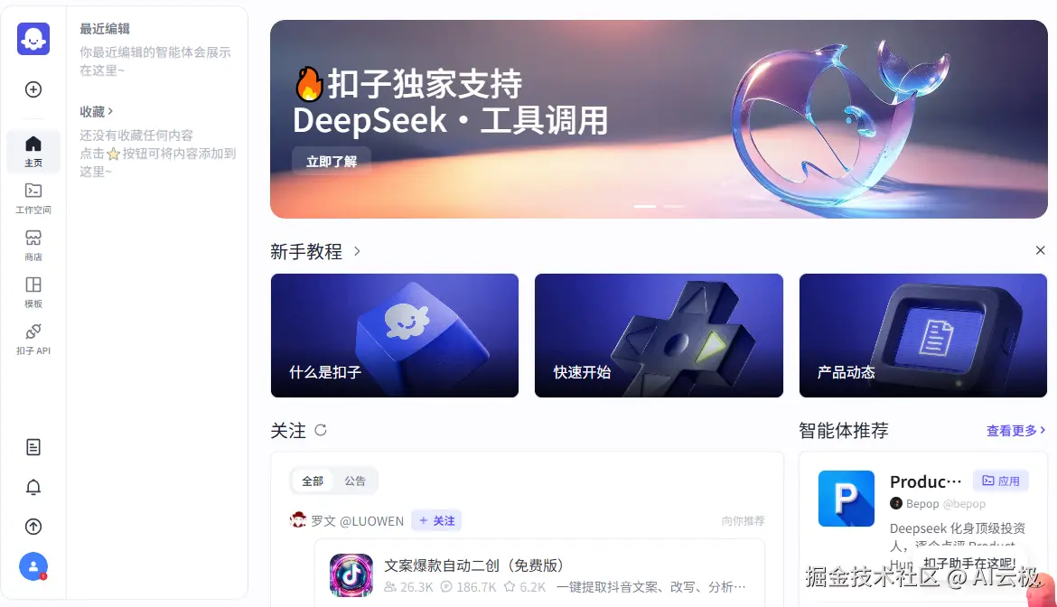 官方地址:www.coze.cn/home