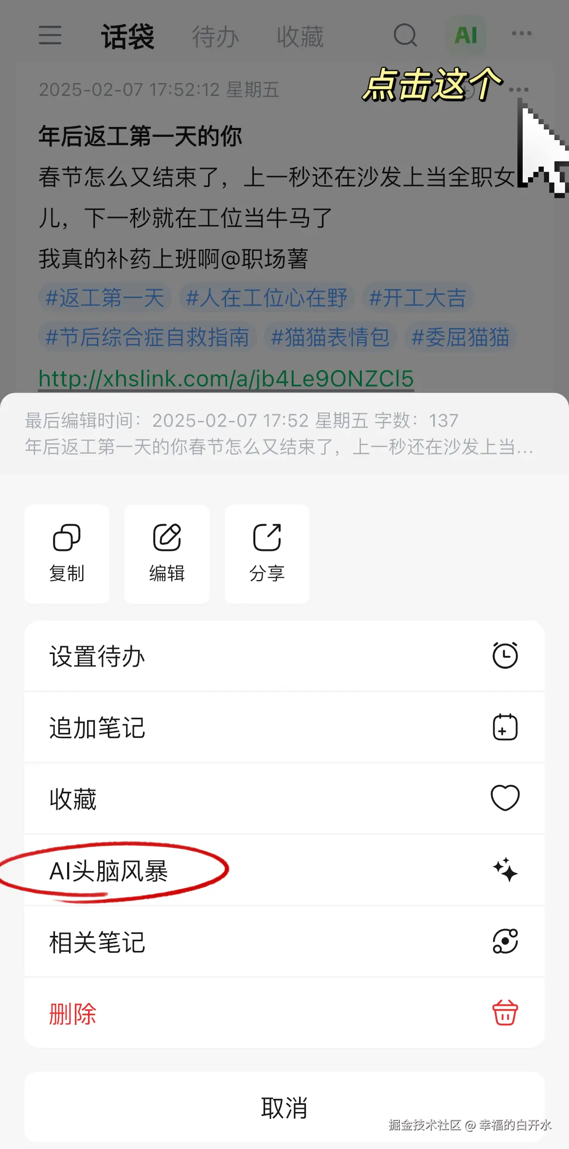 实际应用:你正在进行一项产品设计工作,遇到瓶颈。通过话袋的AI脑暴功能,你提出一些核心问题,AI从多个角度提供创意和解决方案,帮助你拓展思路,最终找到了一个创新的设计概念。