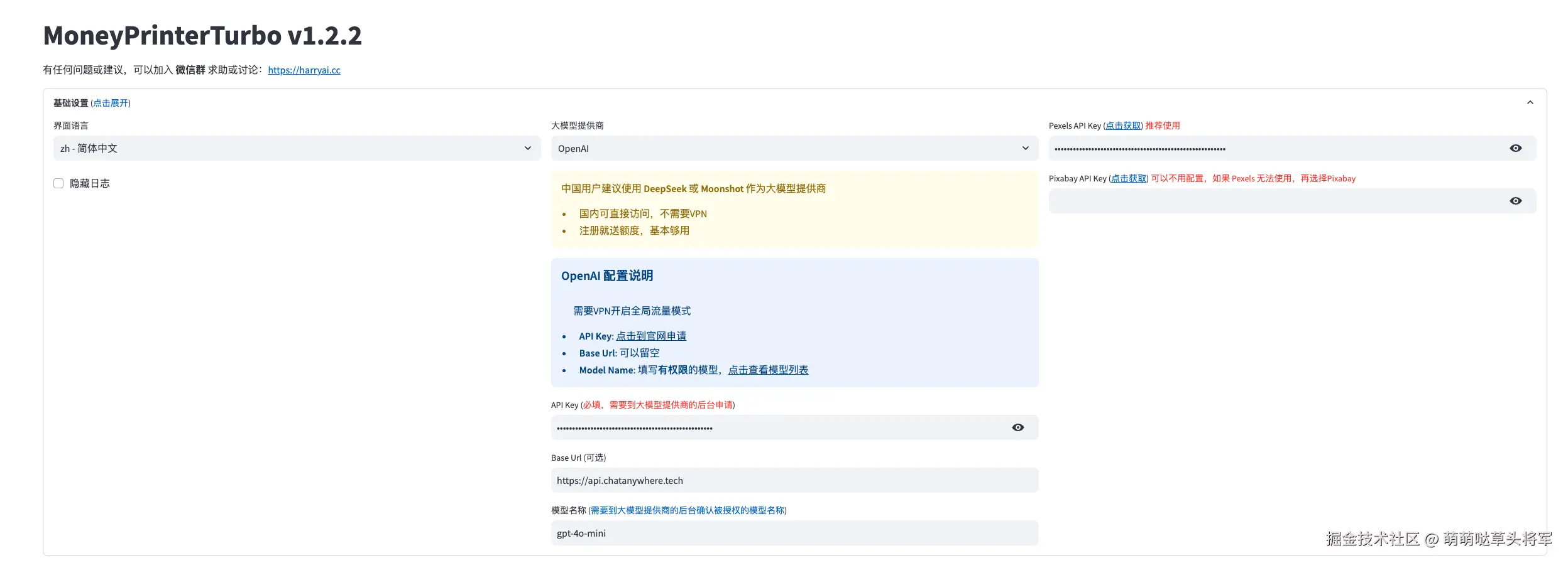 MoneyPrinterTurbo 项目是一款通过AI快速生成文案+视频素材+字幕 = 高清短视频 的开源项目,