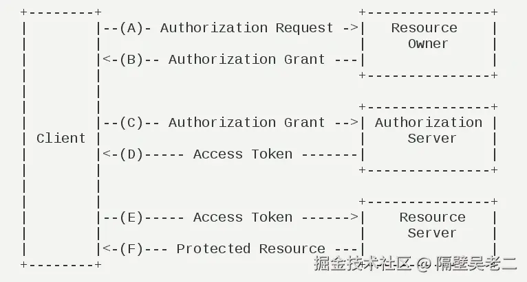 OAuth 2.0的运行流程如下图,摘自RFC 6749: