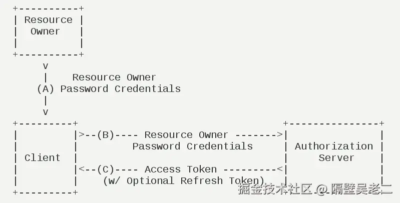 适用于没有前端的命令行应用,即在命令行下请求令牌。 一般用来提供给我们完全信任的服务器端服务。