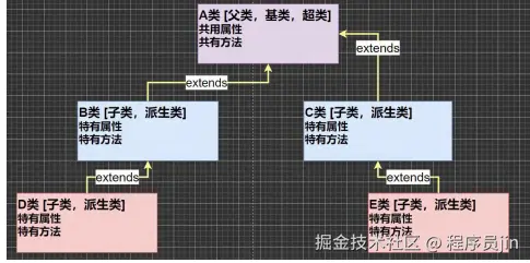 继承可以解决代码复用,让我们的编程更加靠近人类思维.当多个类存在相同的属性(变量)和方法时,可以从这些类中抽象出父类,在父类中定义这些相同的属性和方法,所有的子类不需要重新定义这些属性和方法,只需要通过 extends 来声明继承父类即可。画出继承的示意图
