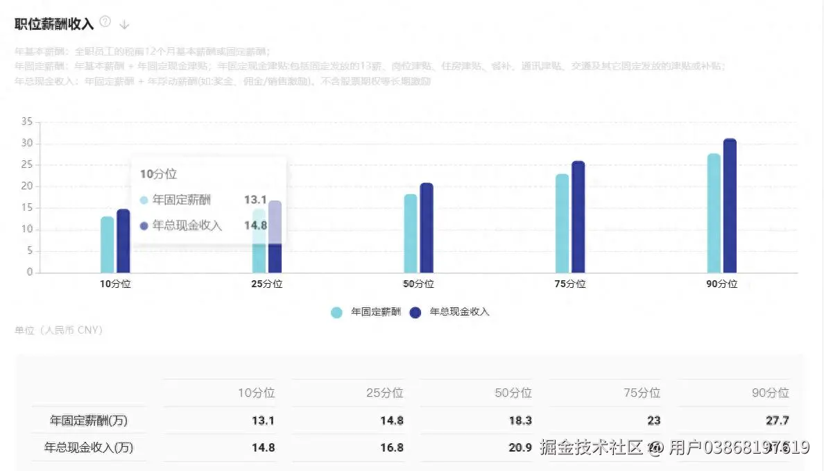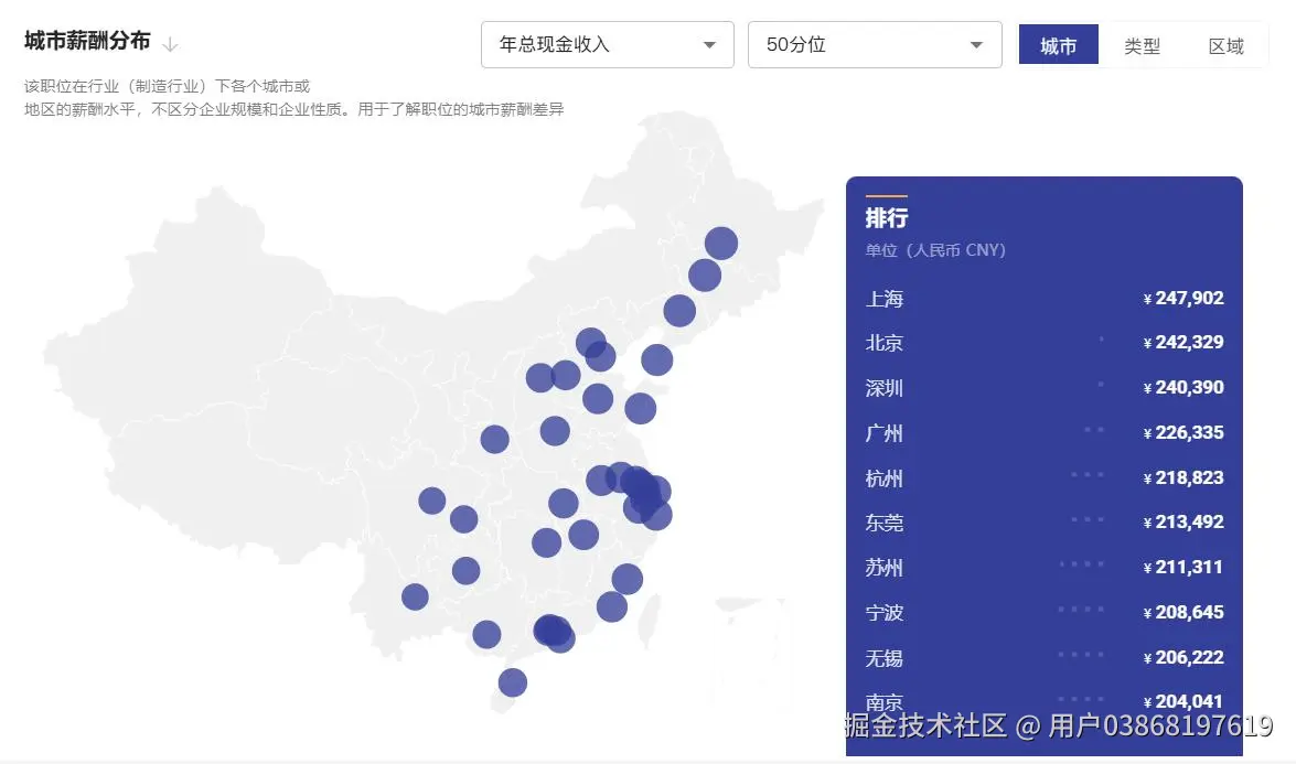 2025年1月制造行业前端开发工程师薪酬分析 用户03868197619 2025-02-28 383 阅读1分钟 根据薪智薪酬数据平台2025年1月薪酬数据来看,苏州地区制造行业民营企业的前端开发工程师年固定薪酬在13.1-27.7万元,年总现金收入在14.8-31.2万元: 根据薪智薪酬数据平台来看,从学历、职位和年薪来看前端开发工程师的薪酬分布如下: 根据薪智薪酬数据平台来看,从城市维度来看前端开发工程师50分位的薪酬分布如下: 根据薪智薪酬数据平台来看,从职能薪酬水平和行业薪酬水平来看前端开发工程师的薪酬分布如下: