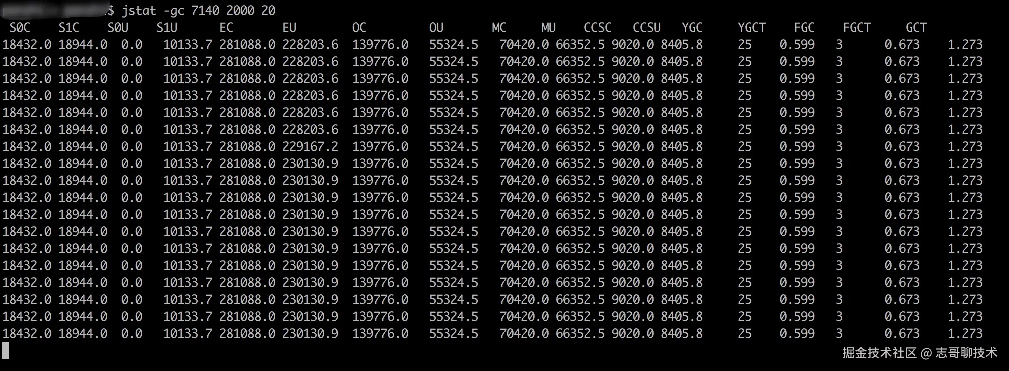 - YGC:新生代GC次数
