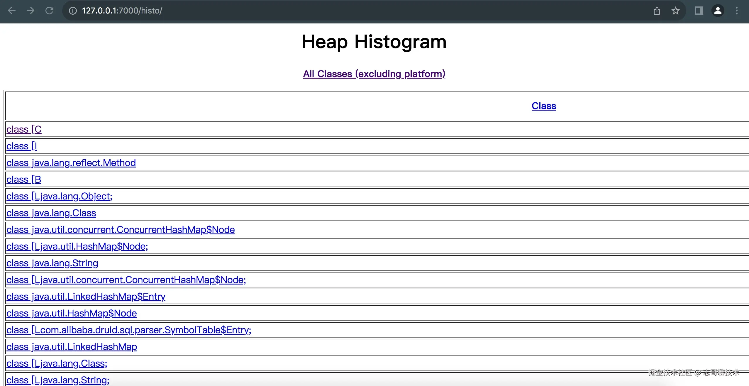 JVM Heap Analysis Tool):该命令通常与 jmap 搭配使用,用来分析 jmap 生成的 dump 文件,jhat 内置了一个微型的HTTP/HTML服务器,生成 dump 的分析结果后,可以在浏览器中查看; - jstack (